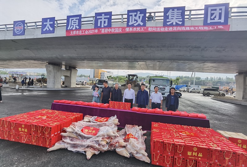 活動中,太原市總工會領(lǐng)導一行先后前往泥向線建設(shè)工程施工五標段、南內(nèi)環(huán)街東延建設(shè)工程施工現(xiàn)場,與廣大施工人員進行親切交談,了解大家的工作和生活情況,并送去月餅、豬肉、口罩等慰問品。