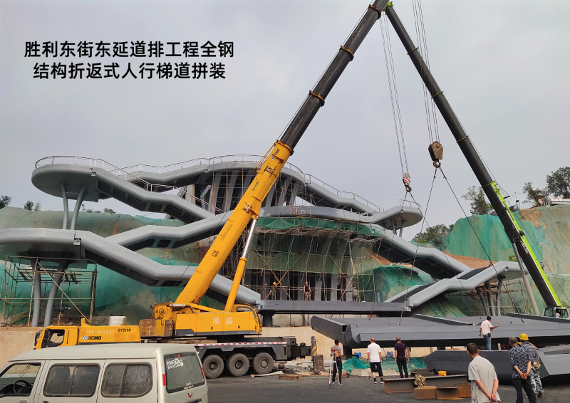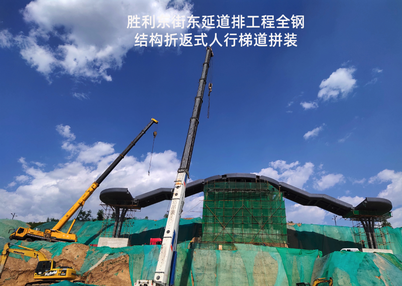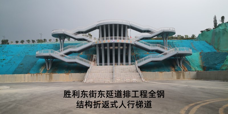 勝利東街東延道排工程起點(diǎn)東中環(huán)路,終點(diǎn)東山高速西側(cè)停車場(chǎng),施工涉及污水管線、雨水管線、電纜隧道、電力排管、停車場(chǎng)一處,全鋼結(jié)構(gòu)折返式人行梯道一座及長(zhǎng)52米,寬15米跨高速人行天橋一座。該工程建成后,成為市民通過(guò)橫跨東山過(guò)境高速和東峰路的“呂”字型人行天橋,更便捷從市區(qū)前往牛駝?wù)沂苛陥@的一條新線路,八公司全體參建人員先后克服半幅封閉施工、高度落差大、結(jié)構(gòu)工程復(fù)雜等難題,順利完成了跨東山高速公路人行天橋、全鋼鋼箱梁結(jié)構(gòu)人行梯道的施工任務(wù),以“市政實(shí)力”打造城市新名片。攻堅(jiān)戰(zhàn)的硝煙漸漸散去,奮戰(zhàn)的場(chǎng)面依然清晰如昨,市政人甘于奉獻(xiàn)、勇于擔(dān)當(dāng)?shù)木裼忠淮午澘淘谔鞘薪ㄔO(shè)的恢弘畫卷上。
