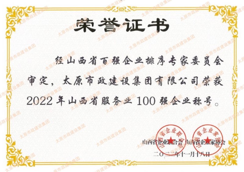 近日,集團(tuán)公司榮獲山西省企業(yè)聯(lián)合會(huì)和山西省企業(yè)家協(xié)會(huì)頒發(fā)的“山西省功勛企業(yè)”和“山西省100強(qiáng)”(排名第45位)“山西省服務(wù)業(yè)100強(qiáng)”榮譽(yù)稱號(hào)。集團(tuán)公司黨委副書記、副董事長、總經(jīng)理溫慧武榮獲“太原市功勛企業(yè)家”榮譽(yù)稱號(hào)。