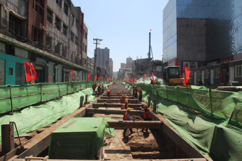 太原市鐘樓街片區(qū)改造市政配套工程位于太原市鐘樓街片區(qū),北起府東街,南至開(kāi)化寺街,西起解放路,東至柳巷北路(橋頭街東至五一路),總面積約0.45平方公里,改造共涉及24條道路,分別為:通順巷、柴市巷、規(guī)一路等。建設(shè)內(nèi)容主要包括道路工程、排水工程、照明工程、管線綜合、景觀工程等。由五公司、十二項(xiàng)目部、十四項(xiàng)目部共同承建。該工程地處老舊城區(qū),地下管線復(fù)雜且未能及時(shí)改遷,為保障現(xiàn)狀管線安全,不影響周邊居民的正常生活,又保證新管線按時(shí)入地,施工中,項(xiàng)目部在大型機(jī)械無(wú)法作業(yè)的情況下,提前設(shè)計(jì)管線位置、確定管線高程,并采用人工開(kāi)挖的方式清理淤泥及廢棄物,及時(shí)為管線鋪設(shè)騰出作業(yè)空間,確保工程順利進(jìn)行。同時(shí),由于道路兩側(cè)商鋪居民密集,場(chǎng)地有限,全體施工人員加班加點(diǎn)、挑燈夜戰(zhàn),利用夜晚施工時(shí)間進(jìn)行渣土外運(yùn)、模板支護(hù)、鋼筋綁扎、混凝土澆筑、回填管道溝槽等,合理利用施工場(chǎng)地,加快施工進(jìn)度,圓滿完成了施工任務(wù),有效改善了鐘樓街片區(qū)環(huán)境,重塑城市記憶、恢復(fù)街道肌理、傳承歷史文脈、體現(xiàn)時(shí)代風(fēng)貌,形成了綜合功能配套完善、古典韻味與時(shí)代韻律協(xié)調(diào)統(tǒng)一的特色文化街區(qū)。