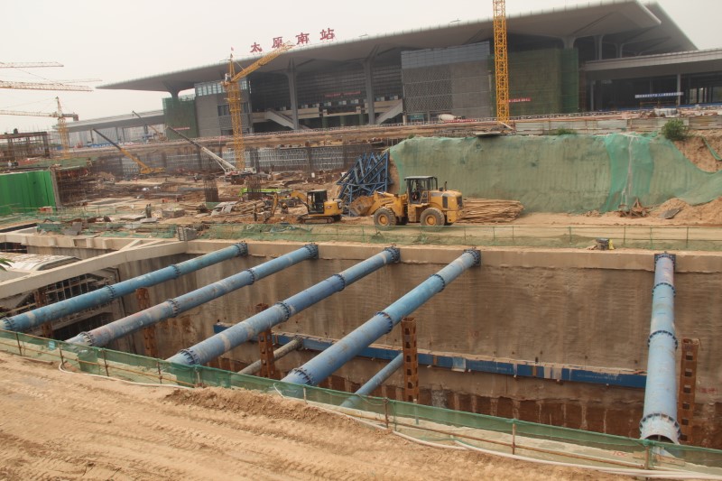 太原南站東廣場配套路網(wǎng)工程位于太原南站東側(cè),西起太原火車南站東出口,東至太行路,南至車站南街以南200米,北至南中環(huán)街,共包括10條市政道路、五條高架匝道引橋及所屬沿線的照明、管線等配套設(shè)施,同時外加2條貴賓小路。其中,北營北路包含地下通道及地面道路兩部分,地下通道全長1124米。該工程作為省級重點工程項目,受到了社會各界的重點關(guān)注和上級領(lǐng)導(dǎo)的高度重視,于2017年4月開工建設(shè),由八公司負(fù)責(zé)承建。施工中的重難點在于北營北路地下通道最深處達(dá)21米的深基坑施工,項目部采用混凝土灌注樁加內(nèi)支撐的模式,第一 道內(nèi)支撐為混凝土支撐,其余為多道鋼支撐,保證基坑壁穩(wěn)定性。地下通道施工時,該通道頂板為折線拱形頂板,澆筑難度較大,項目部組織技術(shù)人員根據(jù)工程特點,研究出一種全新的支模方法,利用插模板的方式進(jìn)行分段澆筑,在確保工程質(zhì)量的同時,保證施工進(jìn)度。同時,由于該工程情況復(fù)雜,項目部技術(shù)人員從“細(xì)節(jié)”入手,及時發(fā)現(xiàn)問題,并反復(fù)溝通協(xié)調(diào),提出了合理化建議,確保了工程有序推進(jìn)。在2019年的施工過程中,集團(tuán)公司組織五家施工單位,60多臺施工機械、130多名施工人員,經(jīng)過21天的奮戰(zhàn),協(xié)作完成10條道路從路基、水穩(wěn)到瀝青攤鋪的施工任務(wù),其中瀝青攤鋪面積達(dá)到7萬平方米。全體參建人員在太原城市建設(shè)的“戰(zhàn)場”上,傾情演繹著市政鐵軍的“速度與激情”,太原南站以嶄新的面貌迎接“二青會”的八方來客。