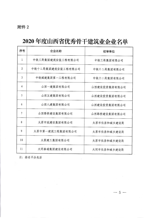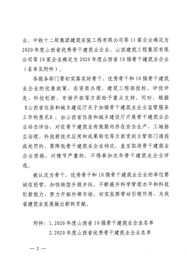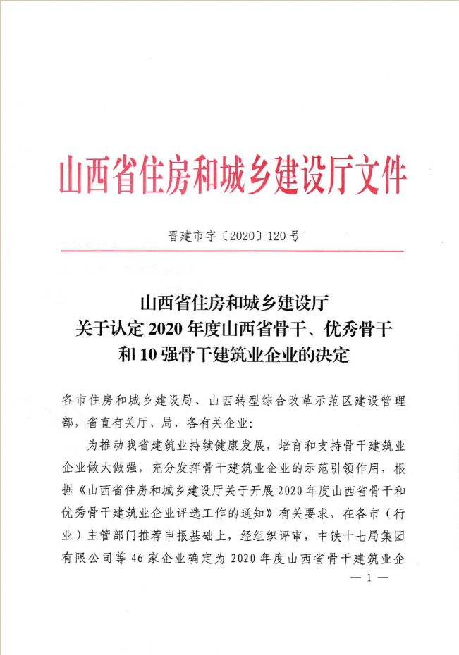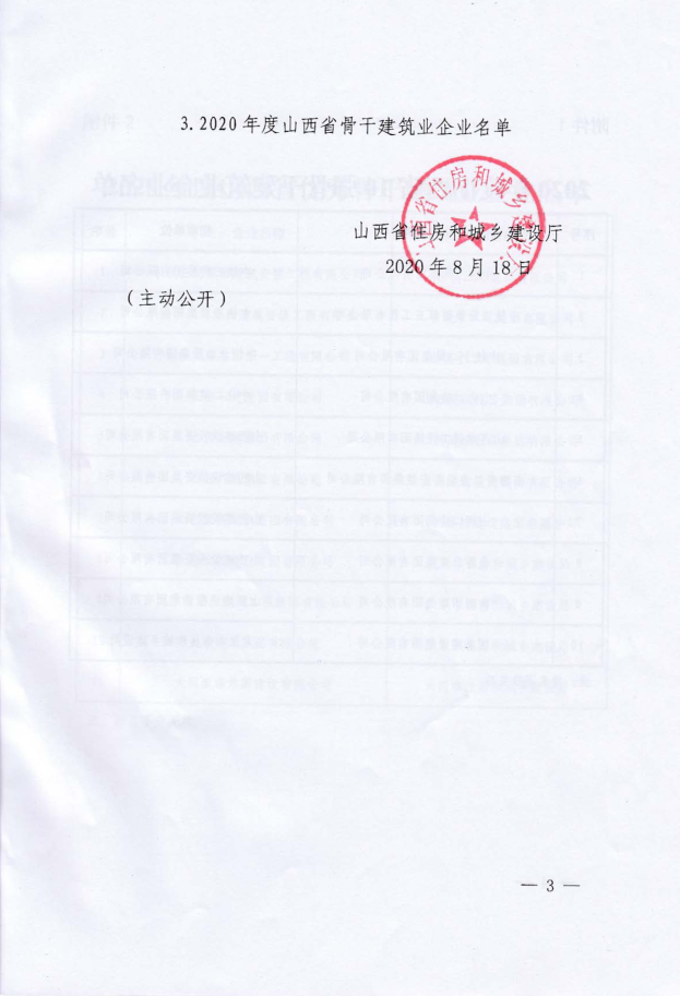 近日,山西省住房和城鄉(xiāng)建設(shè)廳發(fā)布《關(guān)于認(rèn)定2020年度山西省骨干、優(yōu)秀骨干和10強骨干建筑業(yè)企業(yè)的決定》,集團(tuán)公司再次被認(rèn)定為“山西省優(yōu)秀骨干建筑業(yè)企業(yè)”。
