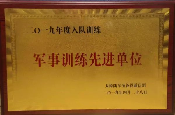 4月22日,在太原陸軍預(yù)備役通信團(tuán)年度入隊訓(xùn)練活動中,集團(tuán)公司的四名預(yù)任士兵進(jìn)行為期7天的入隊訓(xùn)練,并在參訓(xùn)17家單位綜合考核中獲得團(tuán)體第一名。同時,集團(tuán)公司榮獲2019年度“軍事訓(xùn)練先進(jìn)單位”榮譽稱號,蘇勇榮獲2019年度“集訓(xùn)優(yōu)秀學(xué)員”榮譽稱號。