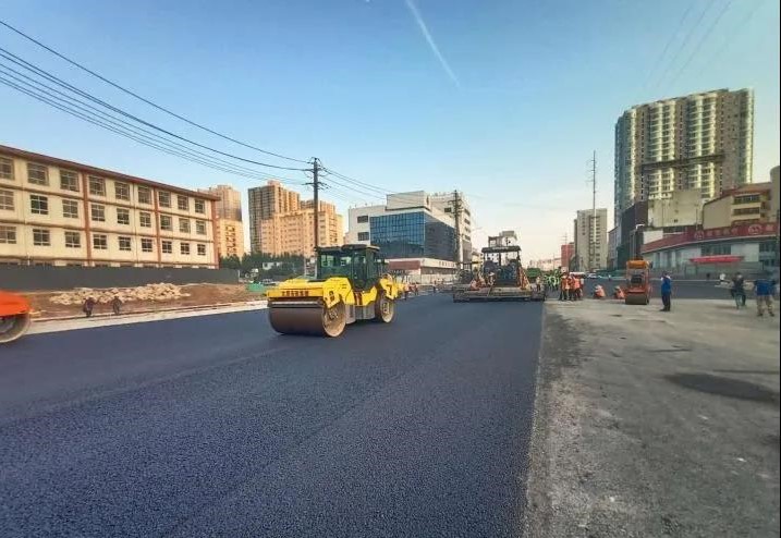 解放路改造工程二標段瀝青混凝土下面層鋪設(shè)已過半