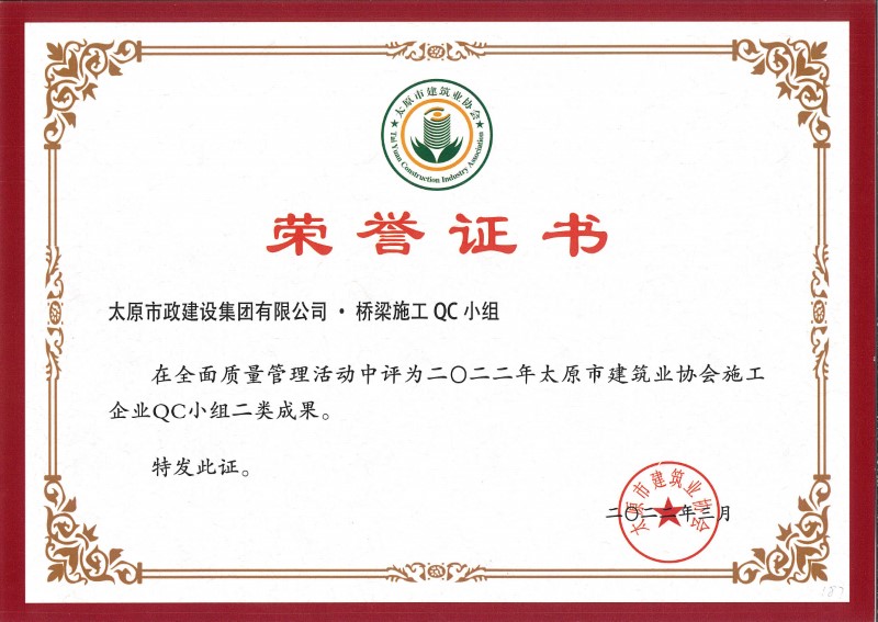 2022年太原市建筑業(yè)協(xié)會(huì)施工企業(yè)QC小組二類成果_橋梁施工QC小組